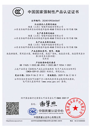 公司通過了CCC認證、節(jié)能認證、環(huán)境標志產(chǎn)品認證、公安部安全與警用電子產(chǎn)品質(zhì)量檢測中心檢測報告(CNAS認證) 、ISO9001、14001、18001、CE、CB、FCC、ROHS、抗震防塵等多項資質(zhì)認證,并入選《政采節(jié)能產(chǎn)品清單》。